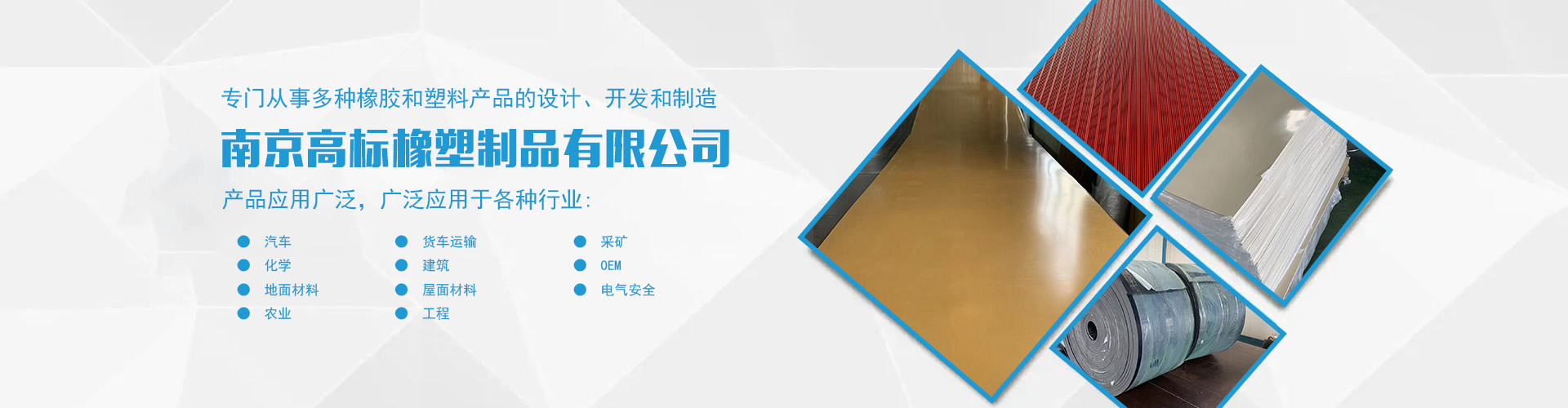 南京高標橡塑制品有限公司是一家專業(yè)的橡膠板、橡膠制品和熱塑性塑料產品的制造商。主營產品:三元乙丙橡膠板,丁腈橡膠版,氯丁橡膠板,丁苯橡膠板,丁基橡膠板,天然橡膠板,硅橡膠板,氟橡膠板,絕緣,防靜電,導電橡膠板,夾布,夾金屬網橡膠板,耐酸堿橡膠板,耐油橡膠板,耐磨橡膠板,阻燃橡膠板,阻尼橡膠板,減震橡膠板,防滑橡膠板,橡膠墊片等。 高標橡塑專門從事多種橡膠和塑料產品的設計、開發(fā)和制造。我們的產品應用廣泛。廣泛應用于各種行業(yè),包括:汽車,貨車運輸,采礦,化學,建筑,OEM,地面材料,屋面材料,電氣安全,農業(yè),工程等。 高標橡塑的客戶服務于許多行業(yè),包括墊片切割、分銷商、工業(yè)用品零售商和批發(fā)商。自